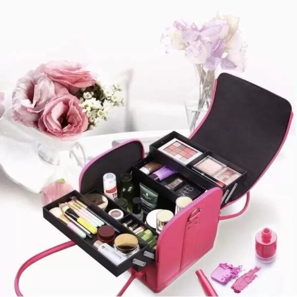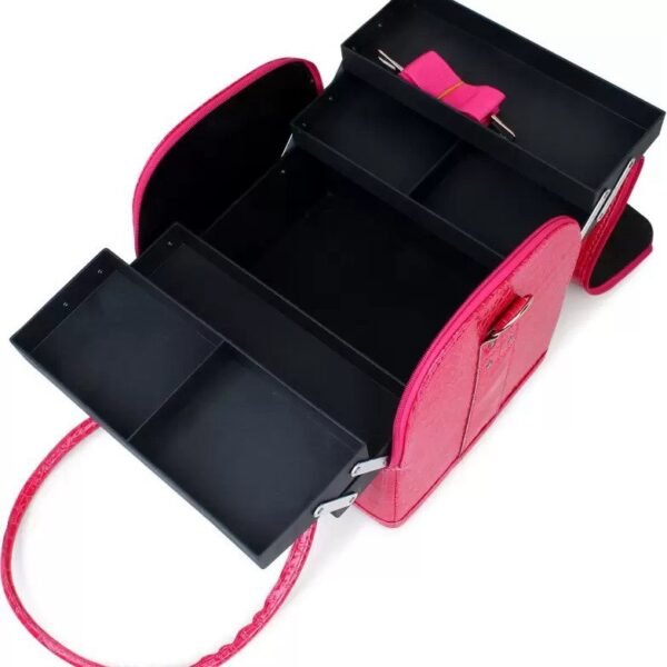 This makeup case has enough space to storage your cosmetics, like lipstick, lip gloss, makeup brushes, eyeshadow, makeup palettes, hairbrushes, skin care products, nail polish, nail art tools and so on.A great makeup case with pretty looking, good workmanship, high quality material, tidy and fine close stitching, multiple brush holders. Everything you need for an Makeup Artist Case.